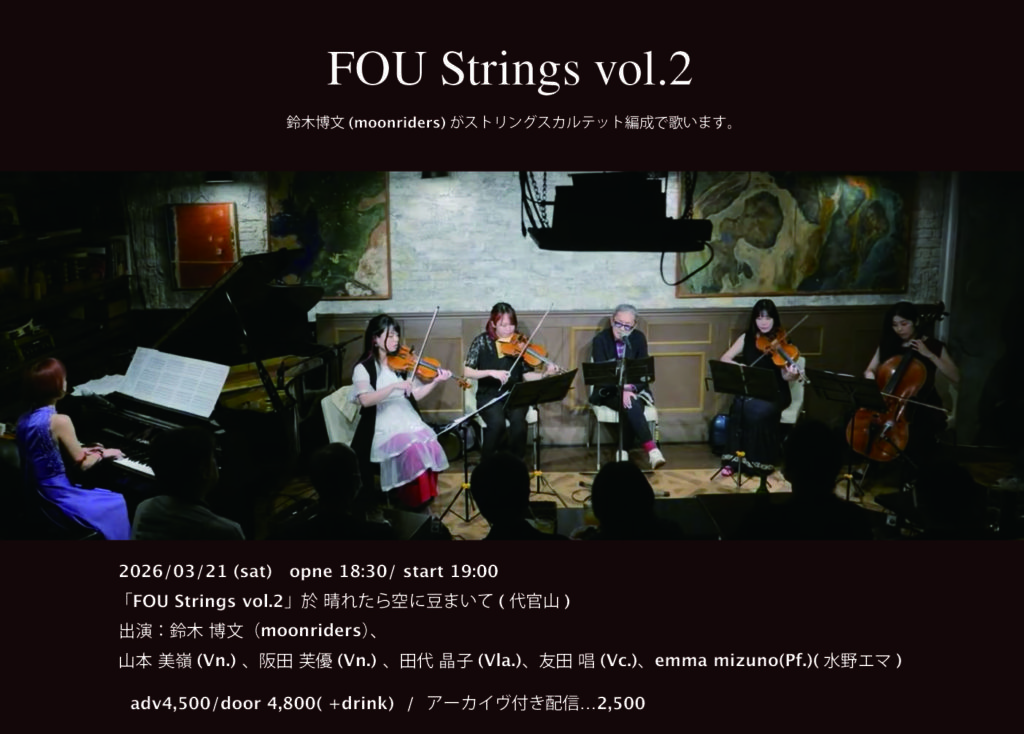 [出演] 鈴木 博文(moonriders) /山本 美嶺(Vn.)/阪田 芙優(Vn.)/田代 晶子(Vla.)/友田 唱(Vc.)/emma mizuno(Pf.)(水野エマ)