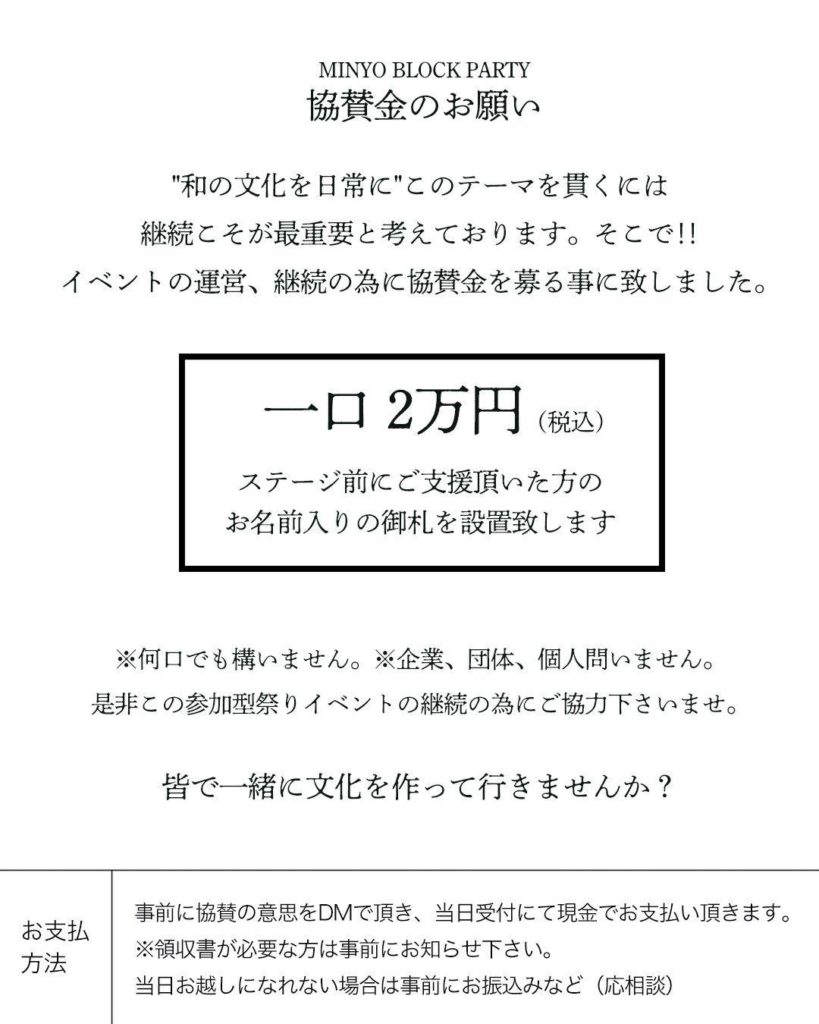 【MINYO BLOCK PARTY 協賛金のお願い】