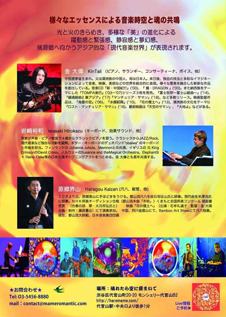 光と火のきらめき、多様な「美」の進化による躍動感と緊張感、静寂感と夢幻感、桃源郷ヘ向かうアジア的な「現代音楽世界」が表現されます。