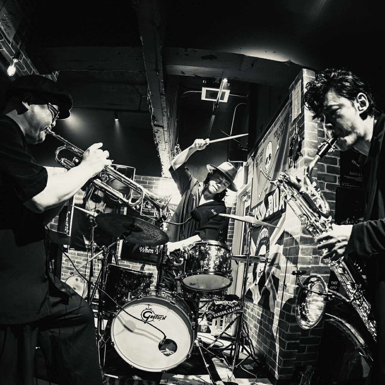 バリトンサックス・青木ケイタ、トランペット・織田祐亮(TRI4TH)、ドラムス・伊藤隆郎(TRI4TH)による、変則3ピースのインストゥルメンタル・ジャムバンド。